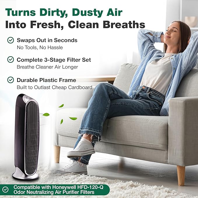 - 2 PACK OF REPLACEMENT AIR FILTER COMPATIBLE WITH HONEYWELL HFD-120-Q QUIETCLEAN AIR PURIFIER'S FILTER. Get back to breathing clean air again!