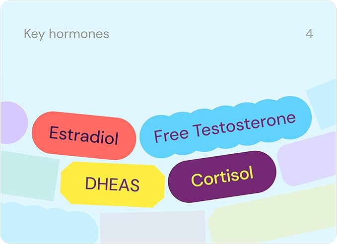 - SIMPLE TEST - This test measures 4 key hormones (cortisol, free testosterone, DHEA, and estradiol). When measured together, the levels of these hormones offer a broader overview and greater insight into your hormonal balance and overall health and wellness, all from the comfort of your home.