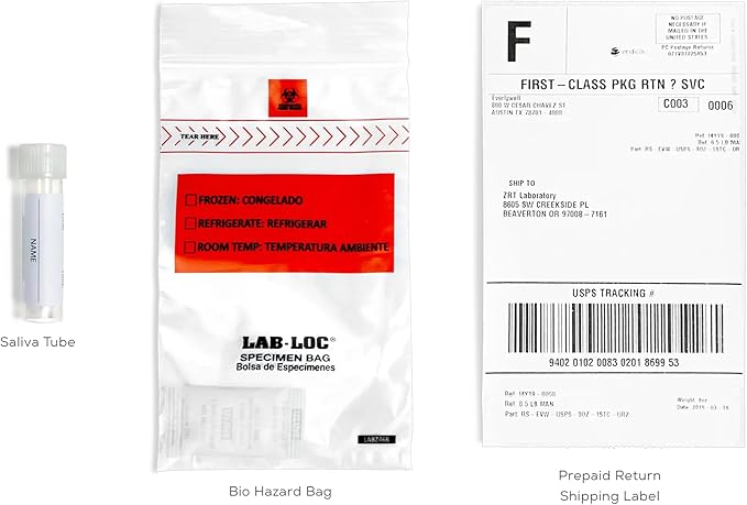 - CONVENIENT, AT-HOME SAMPLE COLLECTION - Test includes everything you need for sample collection (only a small amount of saliva is needed as a sample). The prepaid shipping label included with the test makes it easy to send your sample to the lab for analysis. Due to an increase in demand, you'll get your test results on our secure online platform up to 5-8 days after the lab receives your sample.