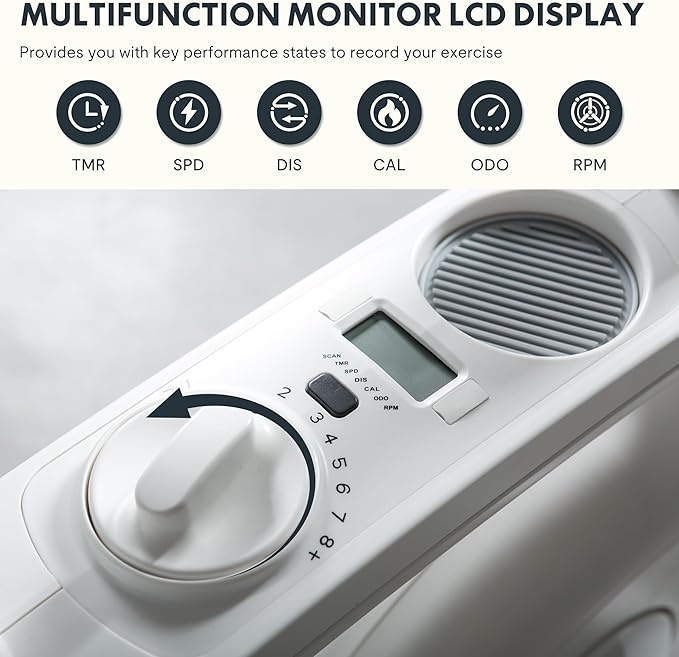 - ✅【Tech Exercise Tracking】Monitor your workout stats on the built-in LCD. Keep tabs on real-time data such as time, speed, distance, calories burned, total distance covered, and rotation speed.ATTENTION: the battery is not included
