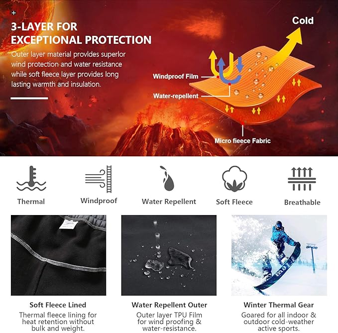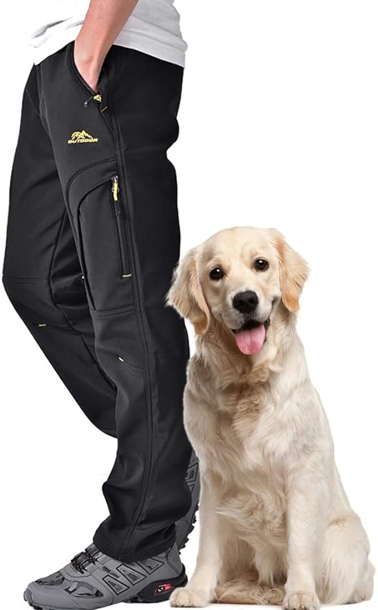 - Waterproof pants mens: The softshell pants inner layer made of warm polar fleece which offers superior next-to-skin comfort, stave of winter winds and chilly temperatures so you stay warm all season long. The classic soft shell surface layer using windproof fabric block the cold air to further improve thermal insulation performance. Both outer and inner are useful for preventing loss of heat from the body, effectively to warm your body even under extreme winter or snowy conditions.
