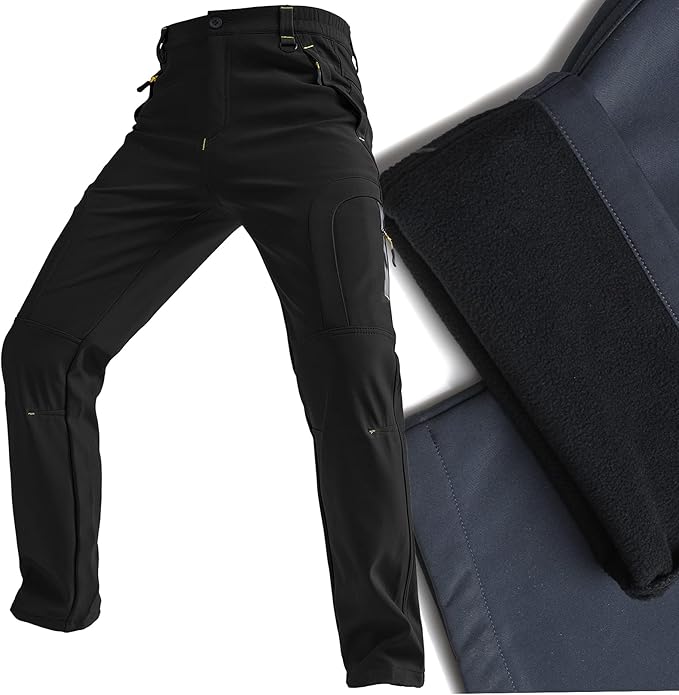 - Softshell pants men : Insulated hiking pants Spandex soft shell fabric and lining with 100% Soft Polar Fleece. Fleece Lining with skin-friendly property offers you with superior moisture wicking treatment, breath freely, keep warmth and dry provides the excellent comfort and flexibility.