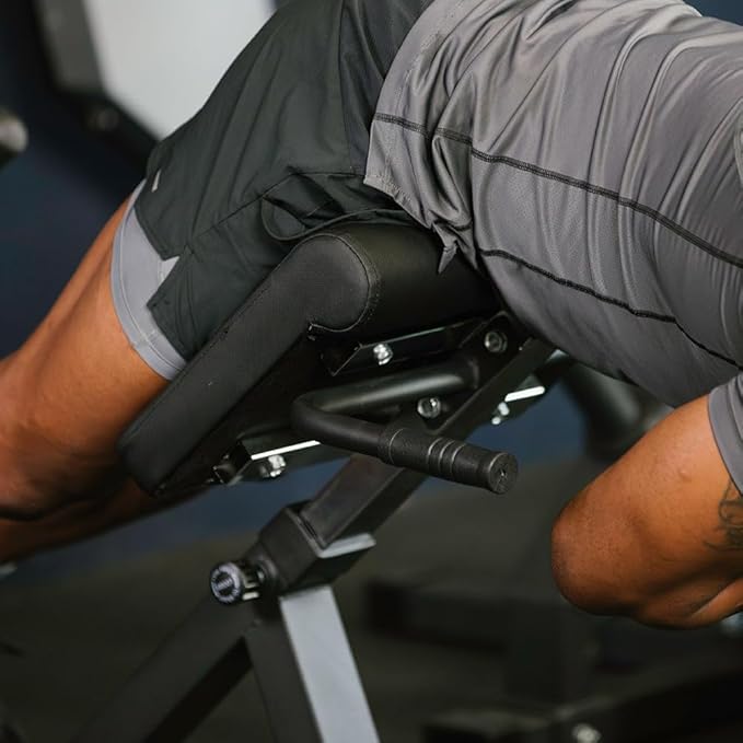 - ADJUSTABLE AND COMFORTABLE: Rated at 250 LB with an adjustable torso height of 34" to 43", this back extension machine adapts to athletes of all sizes. Thick, durable padding keeps every rep comfortable.