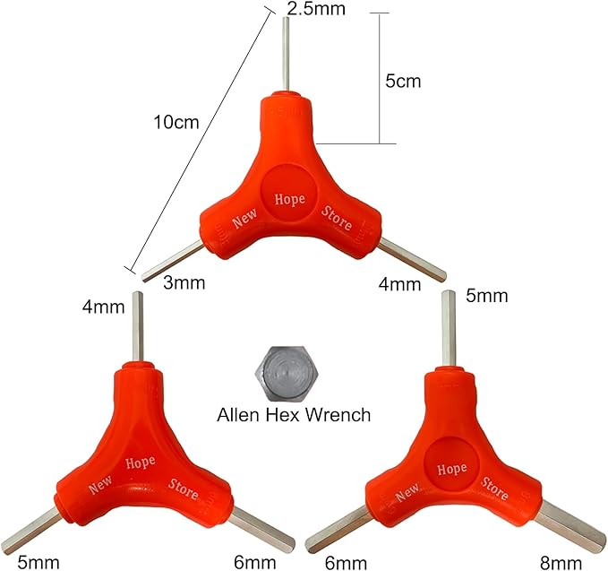 - 3Pcs Allen Wrench set: Each Allen wrench has three size, 2.5mm, 3mm, 4mm; 4mm, 5mm, 6mm; 5mm, 6mm, 8mm. More size for your choice, it can meet your need perfectly.