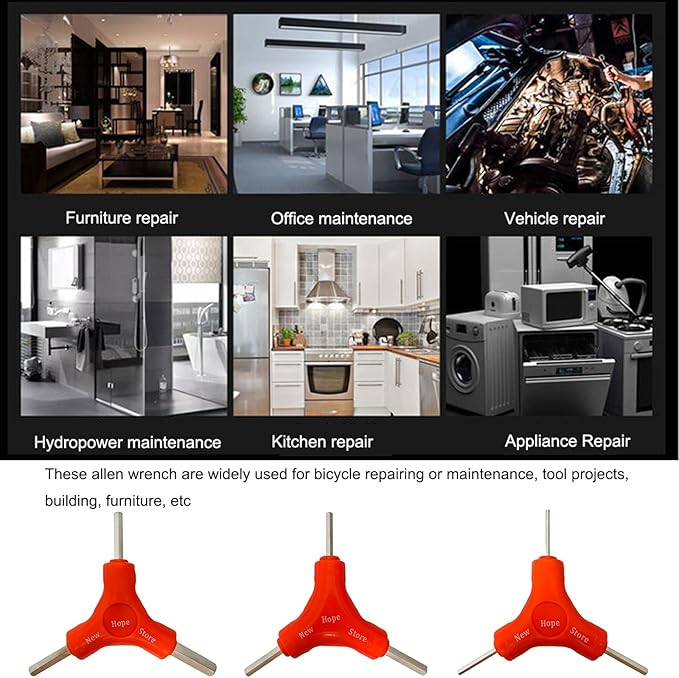 - Widely application: Y-type design is more labor-saving, three way Allen wrenches, widely used for bicycle repairing or maintenance, tool projects, building, furniture, etc