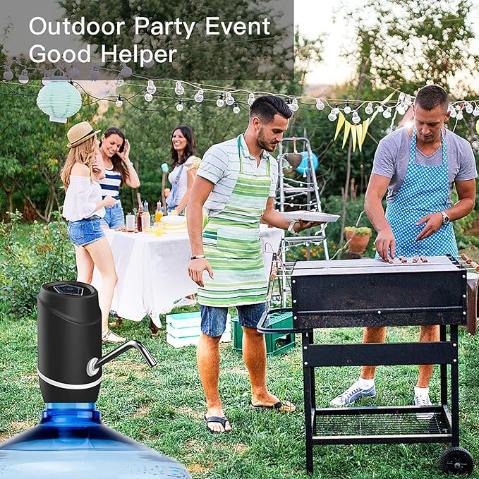 - 【ELECTRIC WATER PUMP DISPENSER WITH RECHARGEABLE BATTERY】Water Jug Pump with Rechargeable Battery Inside, be used for 30-40 days or around 4-5 bottles of 5 gallon water once full charged.Drinking Water Pump is ideal for home or office use,its compact size makes it easy to carry, ideal for trailing, picnics, children's sporting events, beach days and barbecues.Automatic Electric Suction Device Is Very Convenient And Useful.Electric and pumping device suitable for pure bottled drinking water.