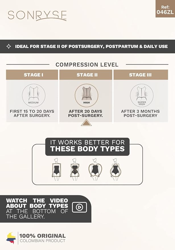 - THE BEST COLOMBIAN POSTPARTUM GIRDLES: SONRYSE's Colombian post-partum shapewear gives guaranteed satisfaction due to their superior shaping tech featuring Powernet for the best compression and inner cotton lining to enhance comfort and freshness. We know how valuable comfort is in a body shape tech faja. When you buy SONRYSE's natural butt lift compression garment, you're getting 100% Colombian export quality.