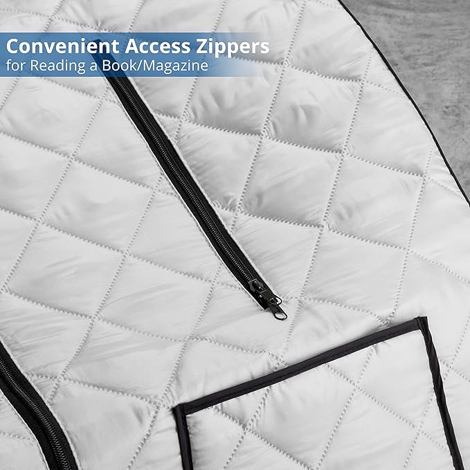- ππππππππππ ππππ ππππππ: Two front zippered hand openings allow you to read, use a device, or reach the dual storage pockets without leaving your sauna session.