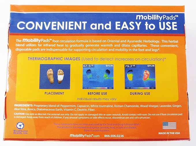 | Mobility Circulation Foot Patches | Made with Lavender, White Tourmaline, Capsaicin | Adhesive Patch Increased Sensation | Relief Pads for Soreness & Pain | Blood Circulation Pads | White