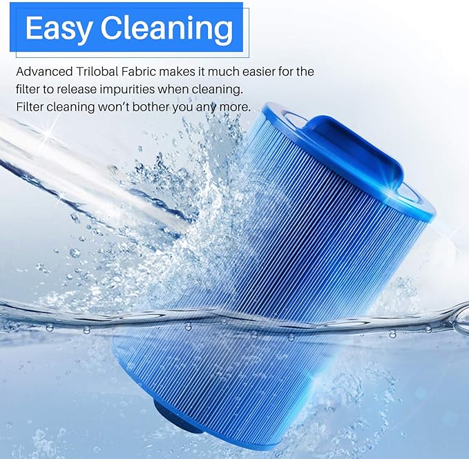 - 【Easy Cleaning】The Trilobal Fabric Structure filter material makes it easy to release impurities when cleaning the filter, the filter is like a new one after cleaning. It is recommended that you clean cartridges every 2 weeks to maximize your spa's performance.