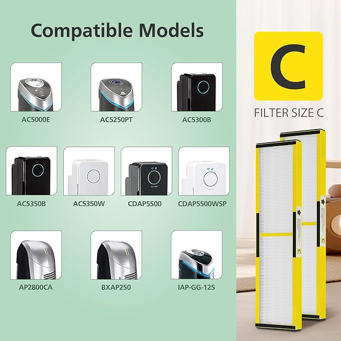 - Compatible Devices : Only Compatible With Following Air Purifier Models : AC5000E, AC5250PT, AC5300B, AC5350B, AC5350W, CDAP5500, CDAP5500WSP, Also Compatible With Pure Guardian AP2800CA, Black + Decker BXAP250 and Lowe's Idlyis IAP-GG-125 Only Compatible With Following Air Purifier Models : AC5000E, AC5250PT, AC5300B, AC5350B, AC5350W, CDAP5500, CDAP5500WSP, Also Compatible With Pure Gu… See more
