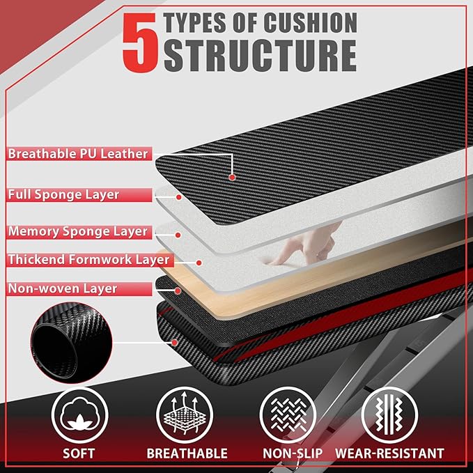 - 【Ergonomic Design】Designed for home gyms, the Olympic weight bench features breathable leather upholstery and high-density foam, providing lasting comfort during weightlifting or seated exercises. This helps reduce muscle fatigue and minimizes the risk of injury during full-body movements.
