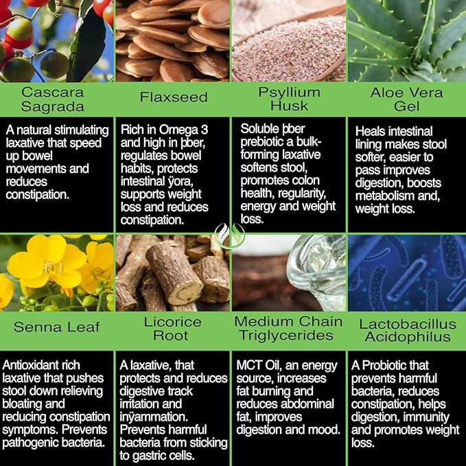 - Special Ingredients : Cascara Sagrada, Flax Seed, Probiotic, Psyllium, Senna