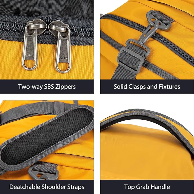 • Versatile Carrying Choices: Our travel duffel bag boasts detachable and adjustable straps, providing the option to wear it as a shoulder bag. Furthermore, two shoulder straps are cleverly concealed in the back zipper compartment, seamlessly transforming it into a backpacking backpack. The top handle allows effortless hand-carrying or convenient attachment to a suitcase. The side handles offer the flexibility to carry it alone or lift it jointly with a companion.