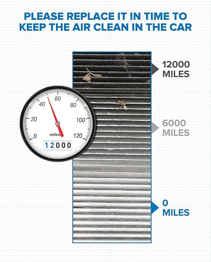 - Replacement Suggestion: To ensure that the air conditioning filter provides you with clean air, recommended replacement 12,000 miles or as specified by the vehicle manufacturer. Please enter your vehicle's year/make/model to check the fitment