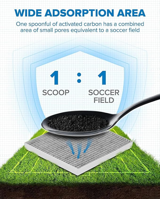 - Enjoy Fresh Air: Activated carbon cabin air filter quickly adsorbs unpleasant odors from outside the ventilation system, provides a more comfortable interior environment for the driver and passengers without adding chemical odor neutralizer