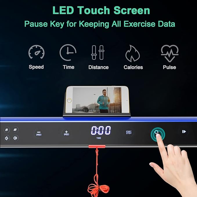 - ๐ฆ๐ถ๐บ๐ฝ๐น๐ฒ ๐ข๐ฝ๐ฒ๐ฟ๐ฎ๐๐ถ๐ผ๐ป: This under desk treadmill features LED touch screen, offering real-time feedback of calories, pulse, time, distance and speed. The treadmill could also be control and adjust via App and remote. Furthermore, all sports data will be kept when you press the pause key for water break and you can switch speed unit between mile and km in APP.