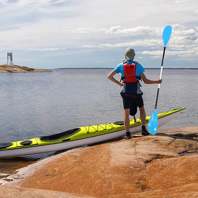 • DURABLE MATERIAL: Strong aluminum shaft construction is lightweight, responsive and can withstand the wear and tear of river paddling , and the durable PP & fiberglass blade delivers long-time durability for all the paddling adventures in your future.