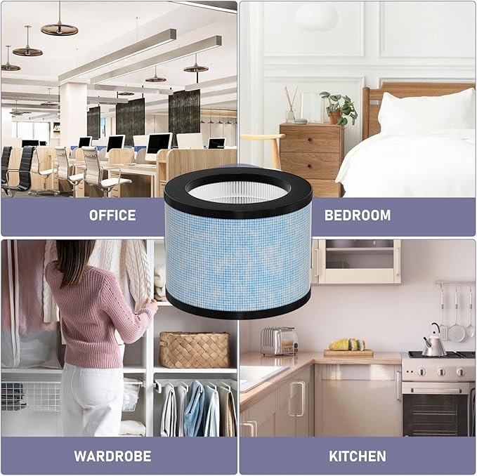 - 3 IN 1 FILTRATION: Pre-filter filters larger particles in the air like dust, hairs, pet fur; HEPA Filter Filter 99.97% of airborne particles; Blue Filter: Block large particles again