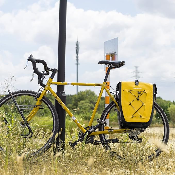 - Fully Waterproof: The bike panniers adopt roll-top closure design, excellent for preventing water flow into the bike panniers. Made of PVC net clamping cloth, super durable and completely waterproof, keeping your contents dry even in a adverse conditions. Easy to clean surface with a wet cloth.