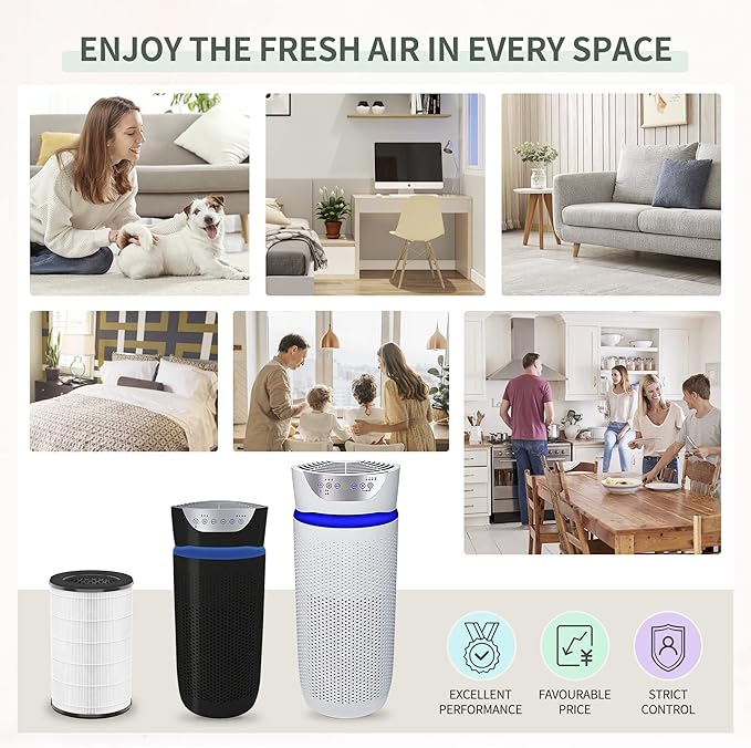 - H13 Grade True HEPA]: 360-degree H13 True HEPA filtration rem0ves up to 99.97% of airborne particles as small as 0.3 microns. Keep your home, office and bedroom away from dirt, improve your indoor air condition to breathe and sleep easier