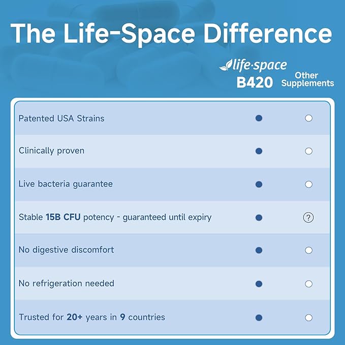 - CLINICALLY STUDIED PROBIOTIC STRAINS - Life-Space probiotics feature premium, scientifically validated strains identified by alpha-numeric codes (e.g., Bifidobacterium lactis B420). These codes indicate strains with documented clinical research supporting their safety and efficacy. Probiotic products lacking strain-specific identification (e.g., unnamed "Bifidobacterium lactis") have not been clinically evaluated for targeted benefits.
