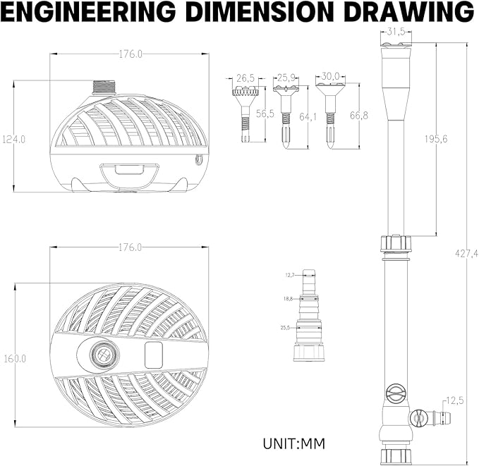 - Four Fountain Heads: The pond pump equipped with 4 fountain heads for creating different fountains, the mushroom,the quarter cone, the tulip and the bubble. With the fountain kits, it is easy to create beautiful fountains in your yard.