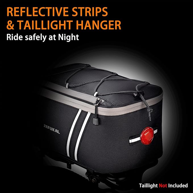 JXFUKAL Rear Bike Rack Bag with Rain Cover, 7L/9L/10L/12L Waterproof Bicycle Ebike Saddle Bag Cycling Pannier Trunk Carrier with Reflector & Adjustable Cord for Commuter Travel Outdoor