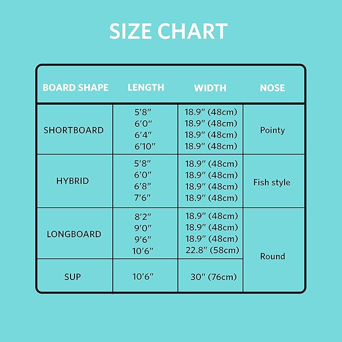 - ALL SIZES AND SHAPES - Ranges of sizes available from Shortboards, Hybrid, Longboards to Stand Up Paddleboards (SUP) and wakesurf board sock – see size chart. We recommend a size right around the length of your surfboard. If your board is on the thinner side, and not very wide, we recommend a slightly smaller size. If it is a thicker style board, we recommend choosing the exact size or a couple of inches longer. If you have a question about sizing, please feel free to ask us!