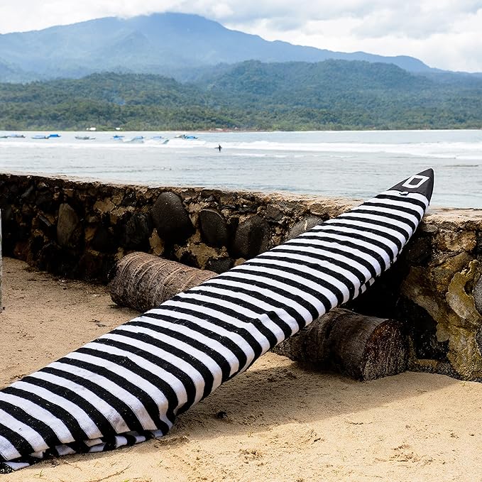 - LIGHTWEIGHT PROTECTION - Surf socks styled cover that protects your surfboard or SUP to and from the beach and prolongs its lifespan. Prevents wax from rubbing on your car's interior. We chose lightly colored material to help prevent your board from getting too hot (over 30° cooler than uncovered surfboards) and from UV discoloration and board delamination over time in the sun.