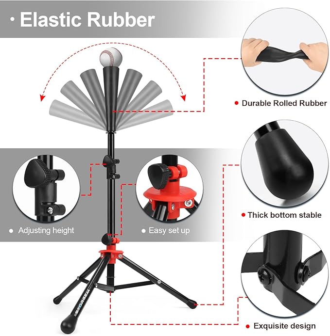 - 【High Quality】baseball net bottom frame is made of thicker heavy-duty steel with black baking paint to avoid rusting. The flexible fiberglass bow is highly flexible and acts as a good cushion. Baseball net is made of strong 7-ply knotless nylon to ensure that hard impacts will not damage the net. Ground stakes are provided to hold the net in place to ensure that it remains stable and avoids tipping during use.
