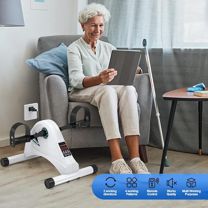 - ๐ERGONOMIC DESIGN & MULTIPLE OPTIONS - This mini electric exercise bike offers multiple options to meet your needs: motorized or manual assisted pedaling, forward and backward. It features ergonomic adjustable pedals, which allow its use both for feet and hands