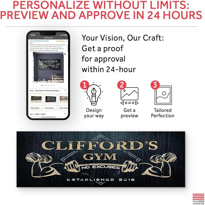 - You get a Preview with a Lifetime Warranty - Check your Personalized Gym Sign Wall Art Decor sent by our Quality Control Team within a day via Amazon Messaging; Love it or We'll make it right for you, no questions asked! Click "Customized Now" & Lets turn your Ideas into Reality!