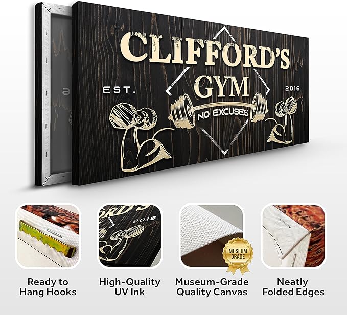 - Museum-Grade Quality - This Gym Sign Wall Art Decor is Prime Gallery-Wrapped Canvas; No sagging, dents, accidental rips; Printed using UV-Resistant Ink with a neatly folded edge