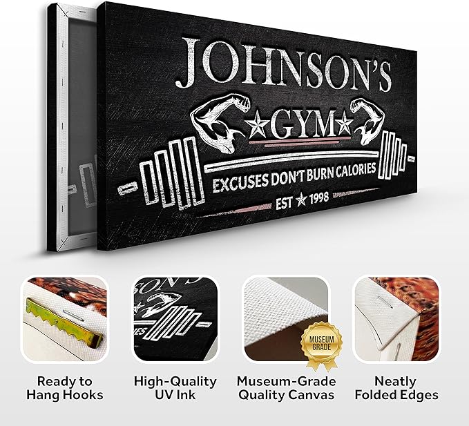 - Museum-Grade Quality - This Gym Sign Wall Art Decor is Prime Gallery-Wrapped Canvas; No sagging, dents, accidental rips; Printed using UV-Resistant Ink with a neatly folded edge