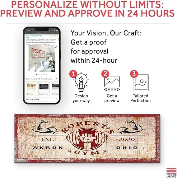 - You get a Preview with a Lifetime Warranty - Check your Personalized Gym Sign Wall Art Decor sent by our Quality Control Team within a day via Amazon Messaging; Love it or We'll make it right for you, no questions asked! Click "Customized Now" & Lets turn your Ideas into Reality!