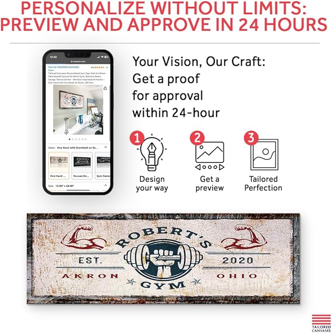 - You get a Preview with a Lifetime Warranty - Check your Personalized Gym Sign Wall Art Decor sent by our Quality Control Team within a day via Amazon Messaging; Love it or We'll make it right for you, no questions asked! Click "Customized Now" & Lets turn your Ideas into Reality!