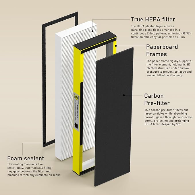 - Package includes 5 x H13 True HEPA Filter and 5 x Activated Carbon Filter and 1 x Light Bulbs. Maintaining optimal air quality in your home or office is crucial for your health and well-being. That's why it's essential to replace the filters in your air purifier regularly. We recommend replacing the HEPA filter every 6-8 months and the pre-filter every 2-3 months for optimal performance.