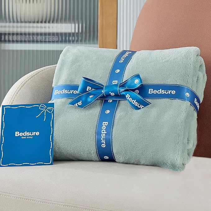Bedsure Sage Green Fleece Throw Blanket - 300GSM Soft Lightweight Plush Cozy Blankets for Bed, Sofa, Couch, Travel, Camping