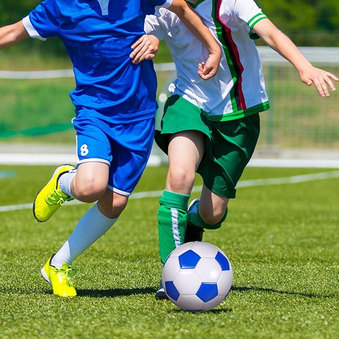 - Proper Size: each size 5 soccer ball measures approx. 22 cm/ 8.7 inch in diameter, properly in size and light in weight, the proper size is suitable for you to carry around without taking up too much space