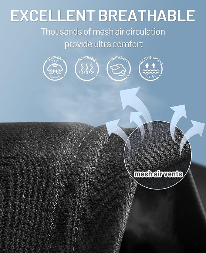 • Excellent Breathable --- Soft polyester fabric surface with thousands of mesh air circulation provides comfortable which can wick moisture quickly to keep your body cool while indoor or outdoor activities