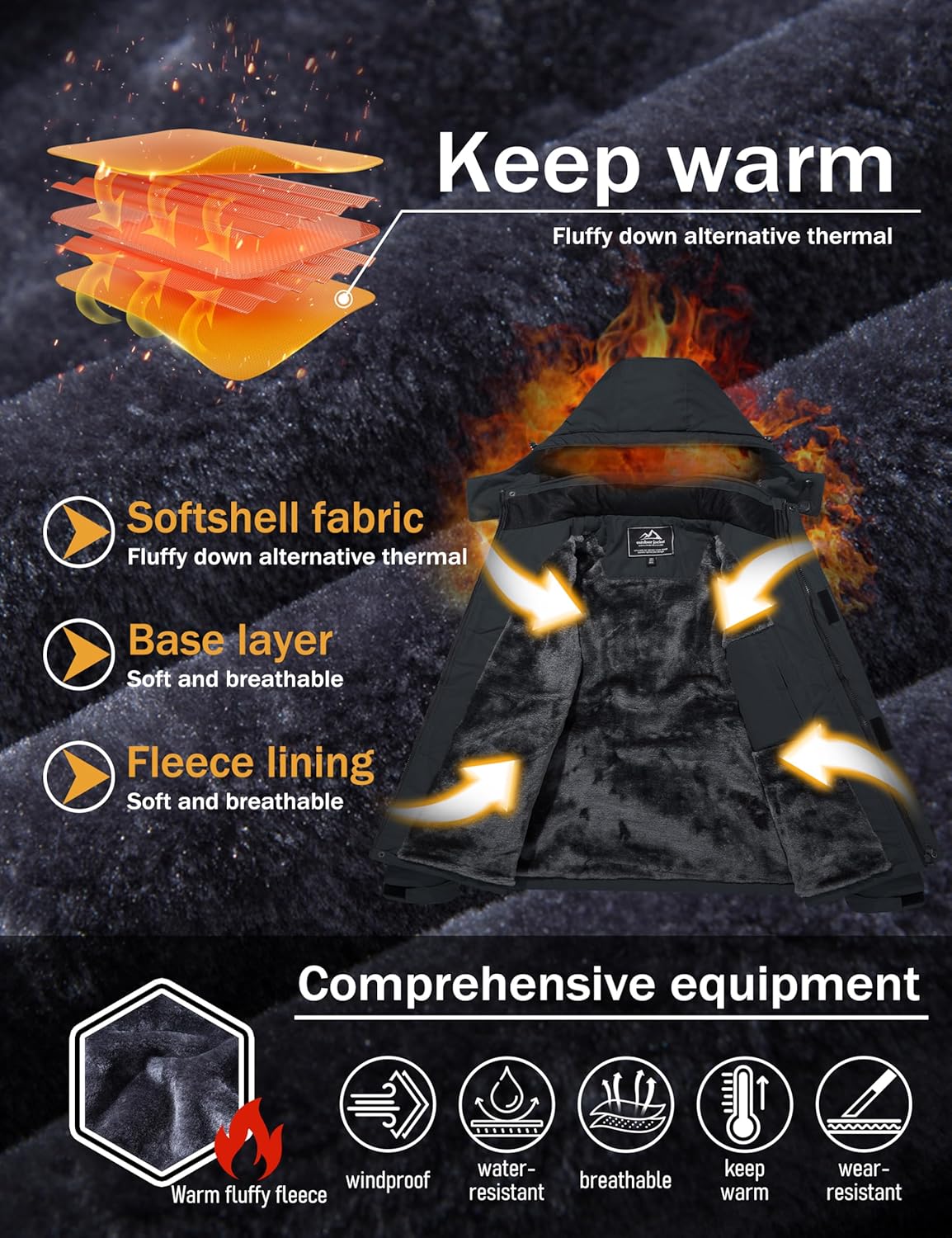 - Fleece Lining: Windproof Warm Jacket Coat With Thermal Fleece Lining to Keep You Warm in Cold Weather.