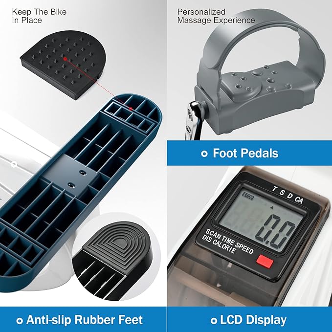 - ▲Functional LCD Monitor Displays:▼ Portable foot cycle arm & leg peddler machine with LCD screen displays includes exercise time, revolution count, revolutions per minute(RPM), calories burned and resetting button and easily to arrange your exercise information data. Moreover includes a scan feature that can show all measurements in sequence, make you know your exercising journey more easily.