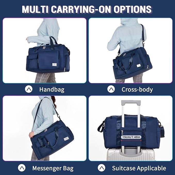 • Airplane-friendly Travel Bag: The size of this travel bag is 18''×11''×11'', ideal as a carry on bag. With additional adjustable shoulder strap & integrated trolley sleeve, the tote bag can be carried with you everywhere, making your travel a breeze