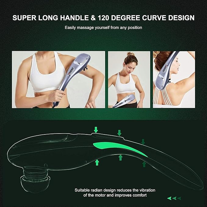 - ๐Mega Performance & Design๐ Back massager is designed for a powerful and quiet massage experience. Its advanced 3,600rpm motor can penetrate up to 8mm below the skin while running quietly, and its noise reduction technology makes the experience even quieter than most competitors. The ergonomically designed handle provides a comfortable grip and accommodates the natural curvature of the human spine. Each piece undergoes quality testing before shipping to ensure its maximum quality.