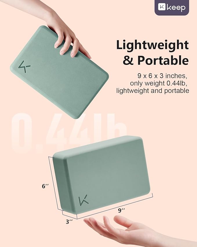 KEEP Yoga Block, High-Density EVA Foam 2 Pack Yoga Block with Non-Slip Textured Surface, Supportive, Lightweight - Ideal for Yoga, Pilates, and Stretching Exercises