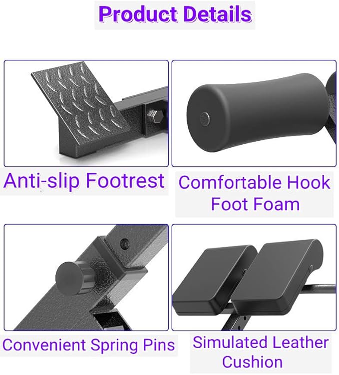 - 【Multifunctional Back Extension Machine】: This is a full-body workout equipment, mainly for the lower back, lumbar abdomen, core, glutes, hips and thighs. The integrated DIP bar allows the strength to focus on your upper body.