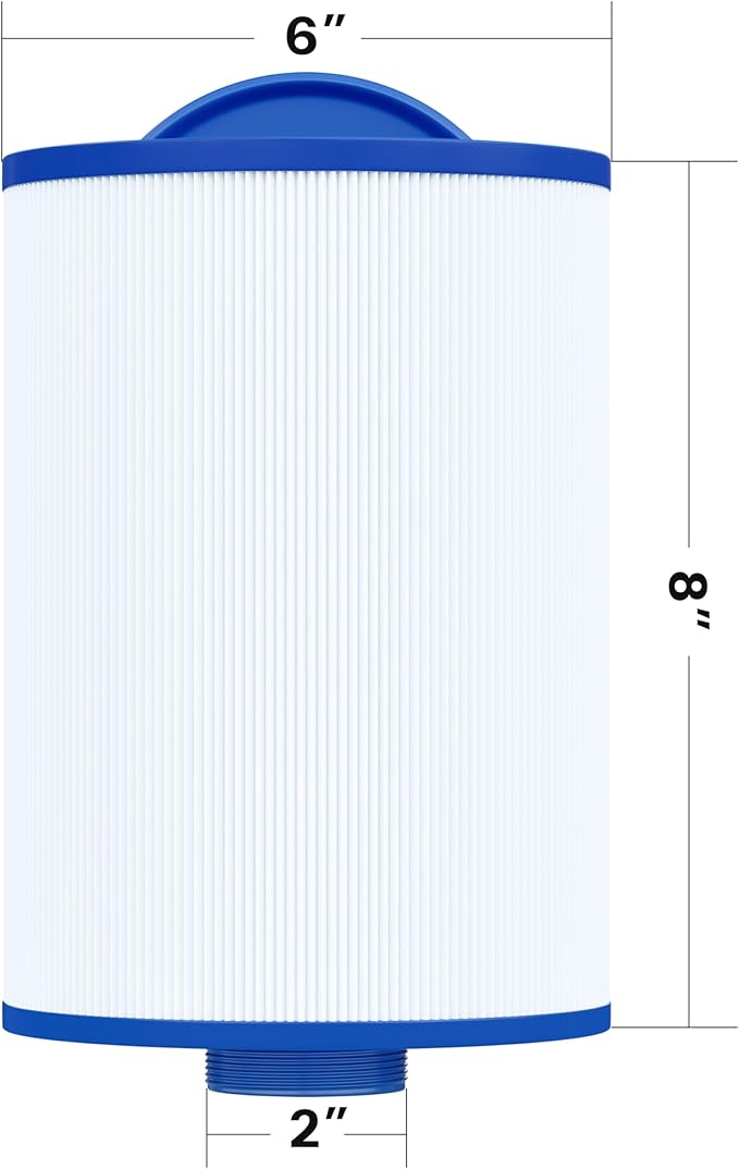 - 【SIZE】Length: 8"; Outer Dimension: 6"; Top: semi-circular handle; Bottom: 2" male thread/MPT; Filtration Area: 35 sq.ft.