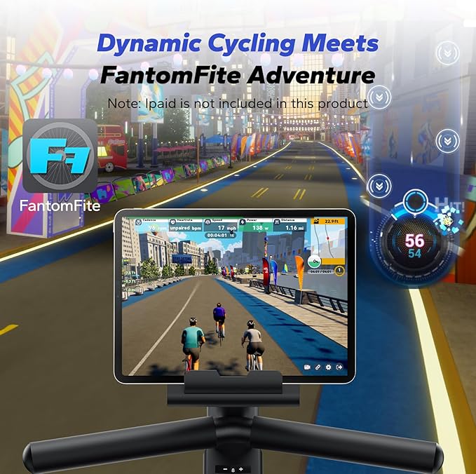 - 【 MERACH Self-Developed App 】 Syncing with your Bluetooth exercise bike. Track real-time stats like distance, time, calories, and heart rate. Plus, the FantomFite app turns cycling into a fun game experience!