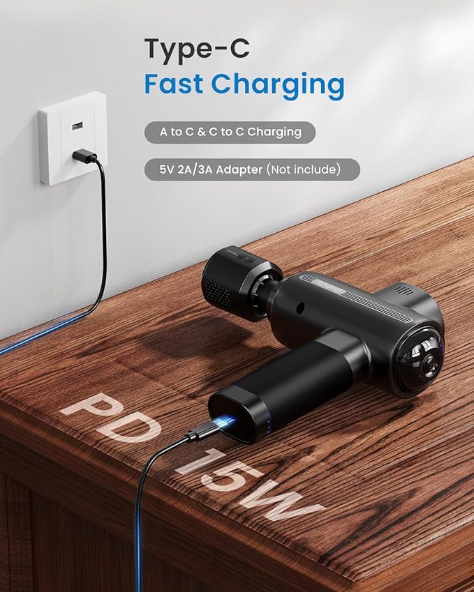 - Ultra-Silent Ergonomics Muscle Massage Gun: This great massage gun is for athletes' hand-back leg workout; It is built with a quiet brushless motor, as low as 40 dB, which blends in with ambient sound to offer you an enjoyable and quiet massage experience